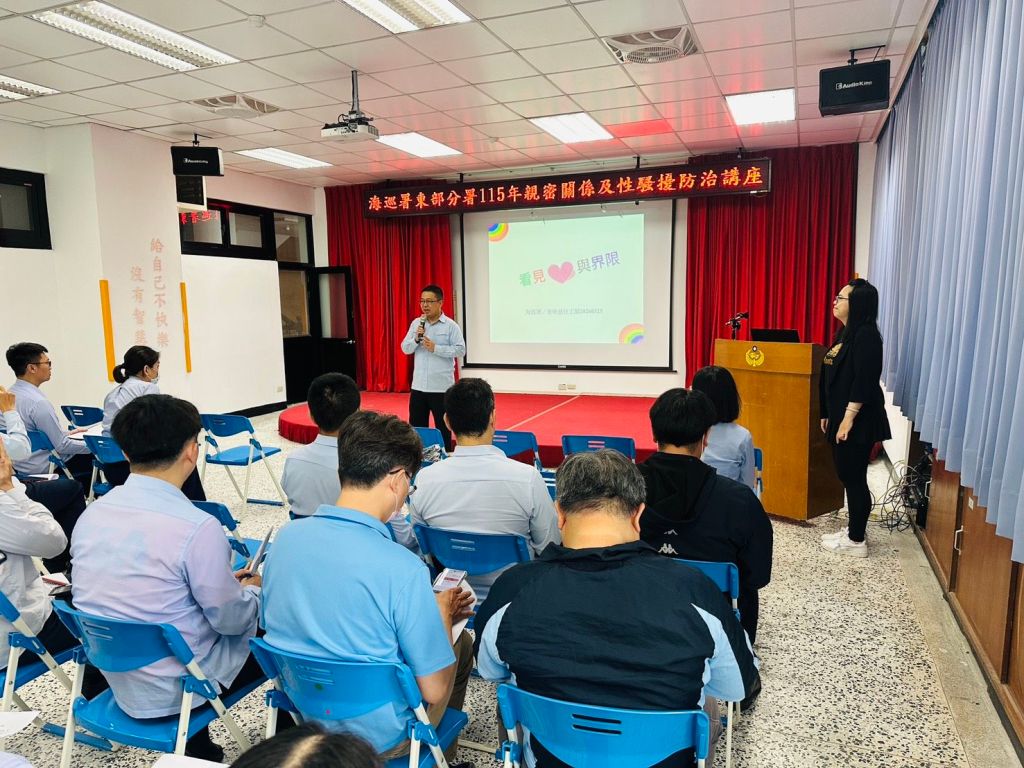 為提升海巡同仁對性別平權及人際互動之正確認知,海巡署東部分署於今(25)日上午邀請財團法人臺東縣「家立立社會福利慈善事業基金會」曾映慈社工師,至東部分署辦理專題講授,下午續赴第一三岸巡隊實施課程,展現對性別友善職場議題之重視。