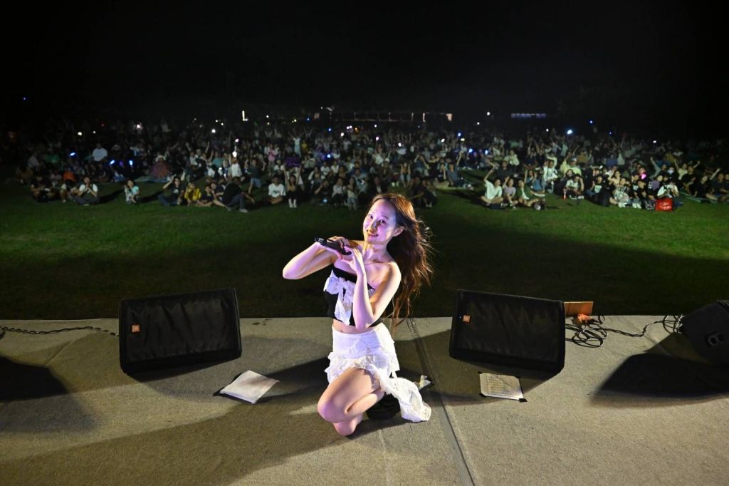 當晚活動觀眾席地而坐,音樂在自然間流動,不少民眾隨節奏舞動、沉浸其中。現場還特別設計「放閃星任務」拍照活動,不論與誰合影只要夠創意,就能上傳參加兌換限定伴手禮,吸引大家踴躍參與,為這場浪漫夜晚留下最閃耀的畫面。