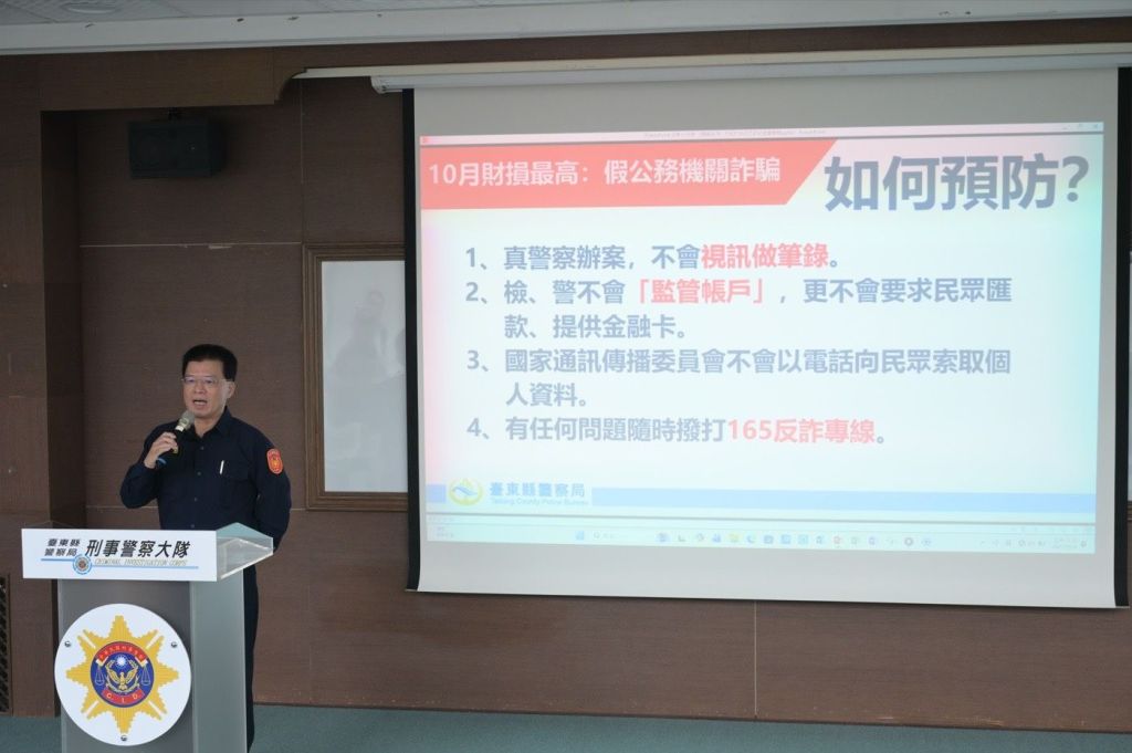 最後,王副縣長感謝所有參與單位,期盼透過警察及郵局協力合作,深植防詐意識,為鄉親的財產安全把關,特別提醒民眾遇可疑情形時,立刻撥打110報案專線或165反詐騙專線尋求警方協助,未來持續結合公私力量,打造「全民防詐」的防護網,讓大眾安心生活,遠離詐騙威脅。(圖 臺東縣政府/提供)